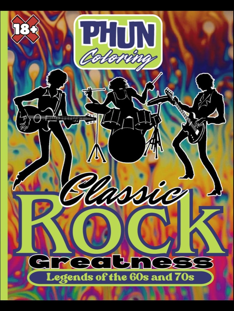 An adult/18+ artistic tribute to rock legends of the 60s & 70s. Relax, rebel, and color loud like Jimi shredding his Stratocaster. Grab some crayons, crank the jams, and color a rock ‘n’ roll masterpiece.
