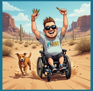 The Crayola-wielding creator behind PHUN Coloring (Marc Strohmaier) hails from the sun-soaked desert of Phoenix, Arizona. A proud uncle, Arizona State University Sun Devil and former teacher, he swapped assignments for crayons to resurrect the art of coloring. Driven by an appreciation for humor, music, and wheeled adventures, Marc invites you to unplug, unwind, and join the mission to Make Art PHUN Again!